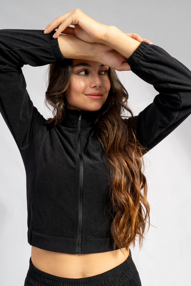 CAMPERA CORTA DE CORDEROY CON CIERRE CENTRAL